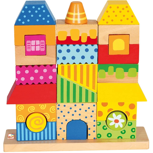 Farbenfrohes, 26-teiliges Steckhaus mit vielen unterschiedlich förmigen