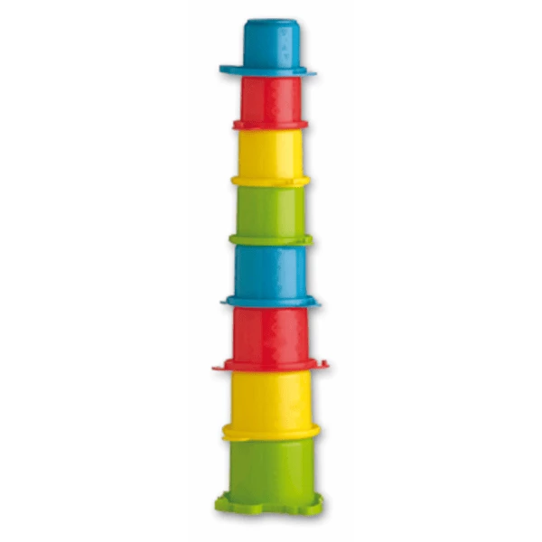 kognitive Denken. Die 8 Stapeltassen haben unterschiedliche Prägungen und